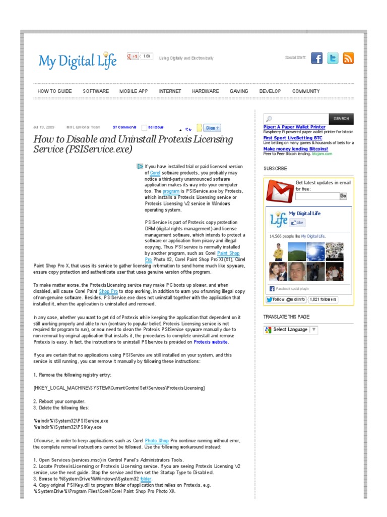 It might also be titled as Protexis Licensing service. Corel PaintShop Pro stops working and licesing you about using an illegal or non-genuine copy if you try to disable this service. Go to Start Menu and open the Control Panel. Well,if you installed it I received the following information from Protexis, who owns this program, which is used to verify ;rotexis there is a legitimate software license.